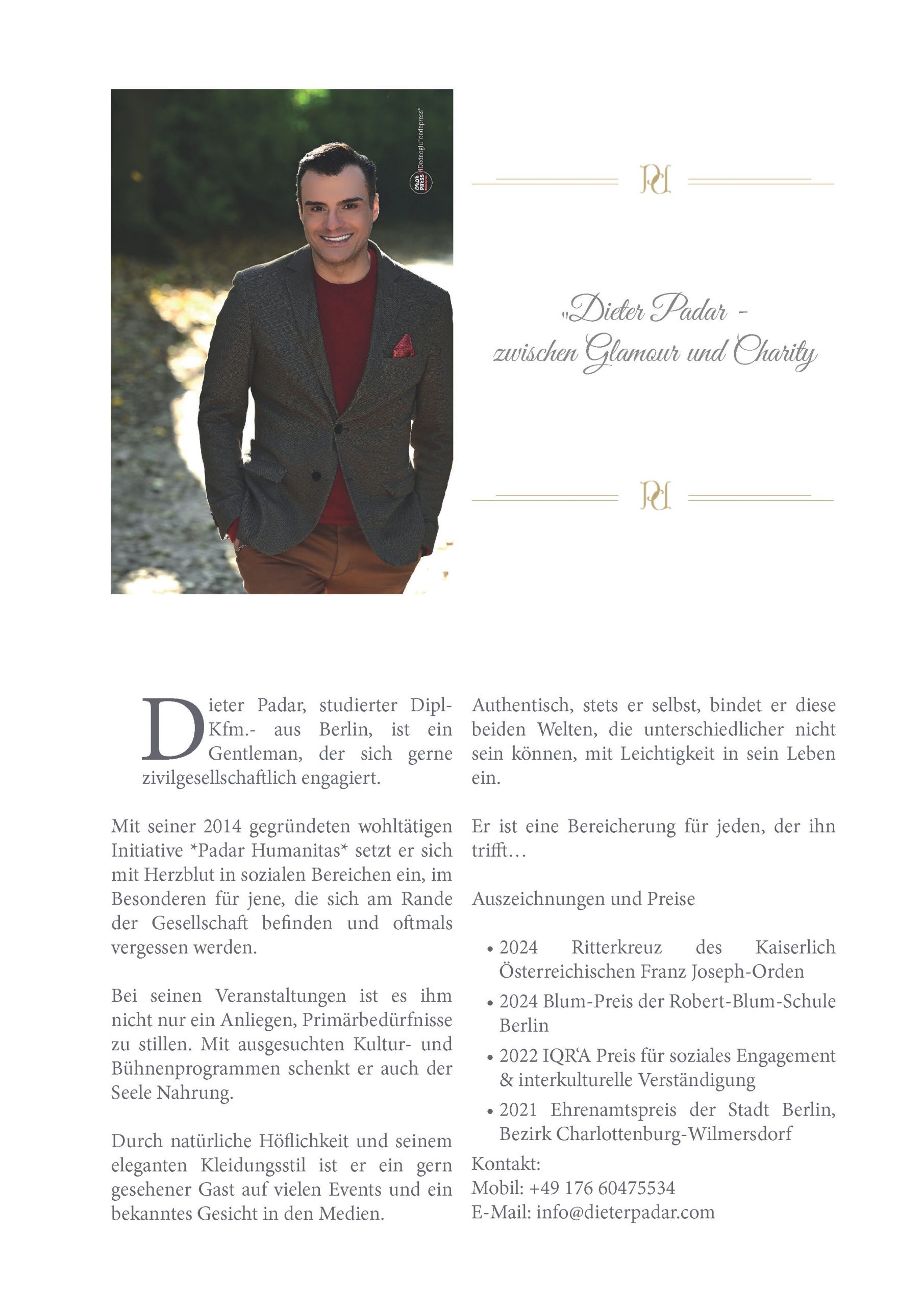 Zur Unterstützung ihrer journalistischen Arbeit finden Journalisten hier offizielle Pressefotos und Informationen über Dieter Padar zum Download. Gerne können Sie das Material auch ohne Rücksprache mit mir für unentgeltliche Veröffentlichungen verwenden. Redaktionelle Bearbeitung ist erlaubt, jegliche Veränderung der Bild- und Textaussage allerdings in jedem Fall strikt untersagt.